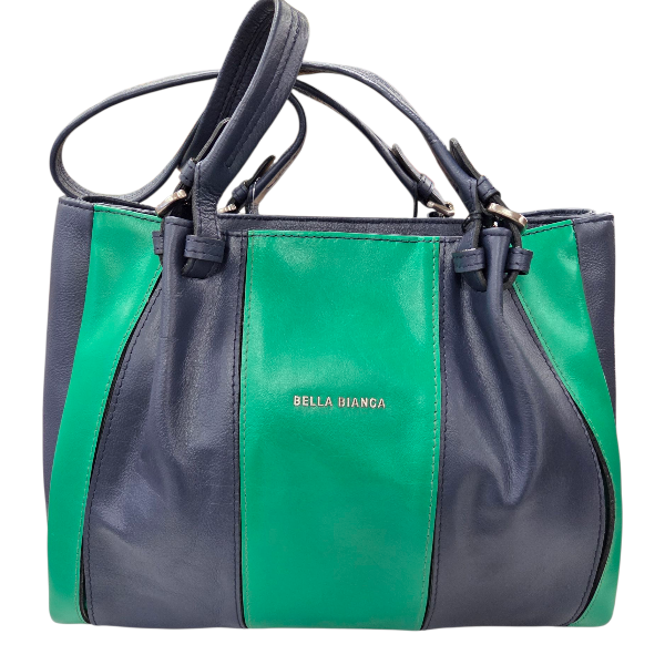 Bella Bianca Leather Handbag 2 Zip Compartment Navy/Green - D398