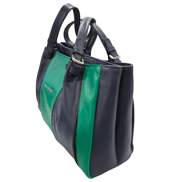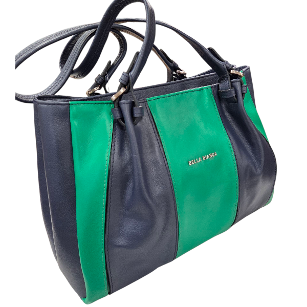 Bella Bianca Leather Handbag 2 Zip Compartment Navy/Green – D398