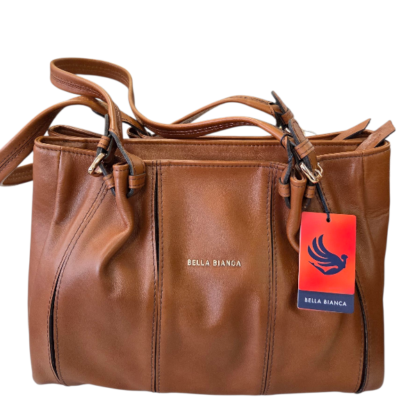Home Handbags New Handbag Arrivals Bella Bianca Leather Handbag 2 Zip Compartment Tan – D398