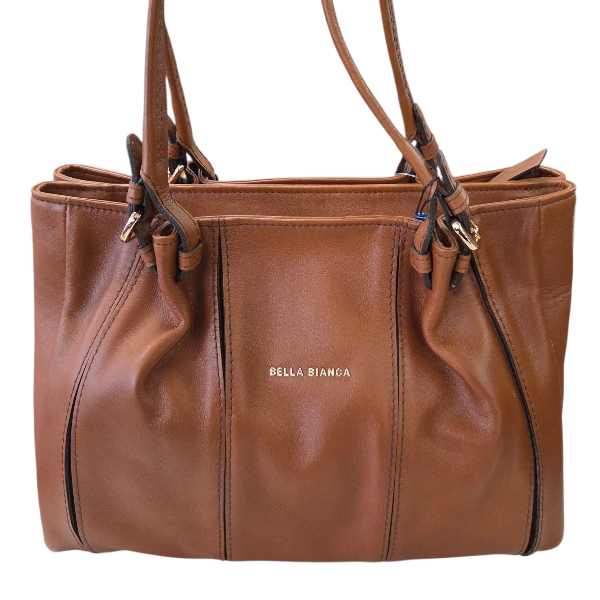 Bella Bianca Leather Handbag 2 Zip Compartment Tan – D398