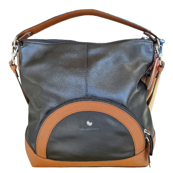 Bella Bianca Leather Handbag Tan/Black – D391T
