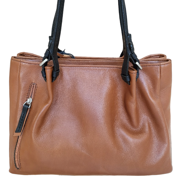 Bella Bianca Leather Handbag Tan/Black- D398