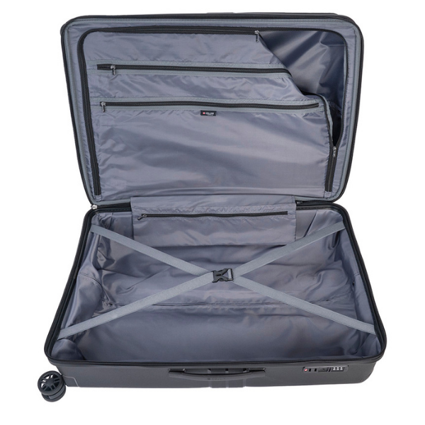 The Cellini Guardlite Spinner is the ultimate travel companion for those who demand lightweight strength and sophisticated design. Crafted from a durable polypropylene shell, it offers exceptional protection while keeping your luggage easy to handle. The 360° double-spinner wheels glide effortlessly through airports, and the integrated TSA combination lock ensures your belongings remain secure. Inside, the dual-compartment interior with compression straps and zippered divider keeps everything neatly organised. Perfect for the frequent traveler or family holidaymaker, the Guardlite combines durability, practicality, and modern elegance — making every journey smoother and more stylish. This bag is check-in size.
