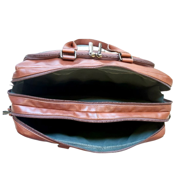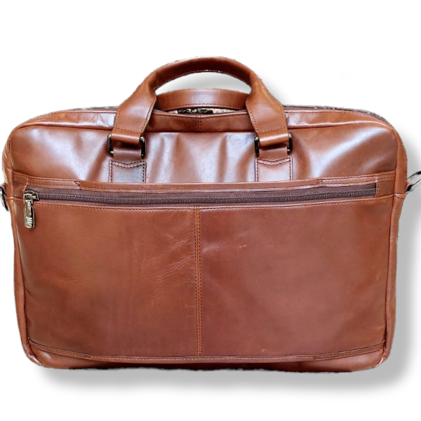 This double zip leather laptop bag carries all your tech, related cables and papers with ease! It has many zip compartments for your stationary and small valuables and two main zip compartments for your laptop and tablet. You can carry it using the top handles or the shoulder strap that also comes with it.