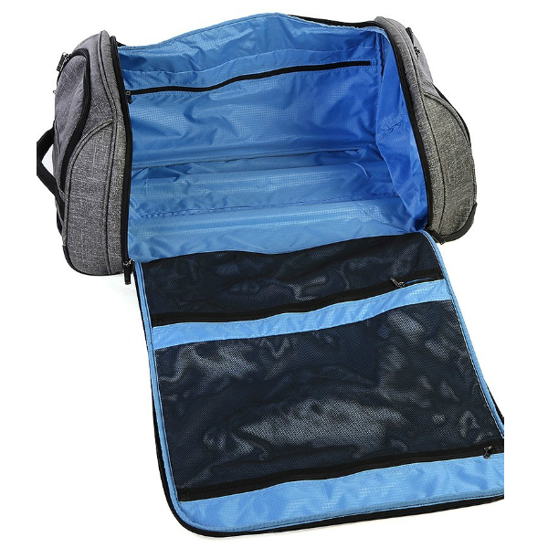 Made of the new Duratex material, the Cellini Origin duffle bag is large and spacious for your clothes and other belongings. There are multiple pockets outside to pack your smaller things and this bag can be wheeled or carried across your shoulder. This bag is check-in size.