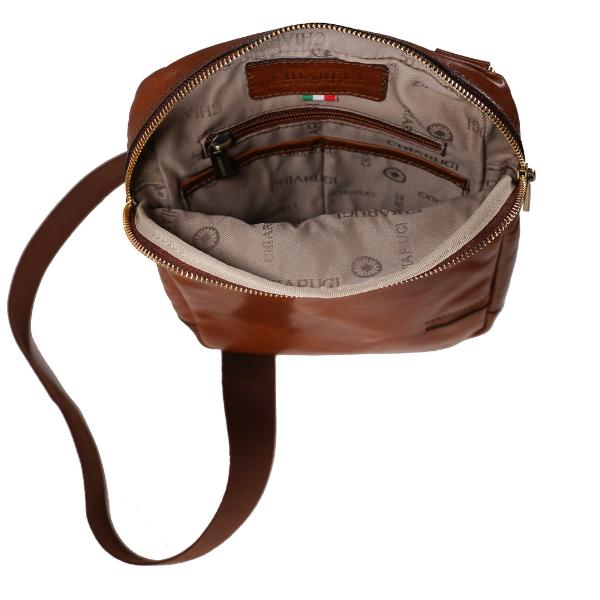 Handmade in Florence, Italy, Chiarugi boasts a long tradition of producing fine leather bags, constructed with the care of artisans using Florentine leather. This men’s crossbody is slim and fits your phone, keys, wallet and other accessories. It has a long shoulder strap to wear across your shoulder and also has little front zip pockets. Chiarugi is exclusive to Gopals Bags & Luggage.