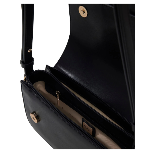 – Convertible strap for shoulder or crossbody wear
