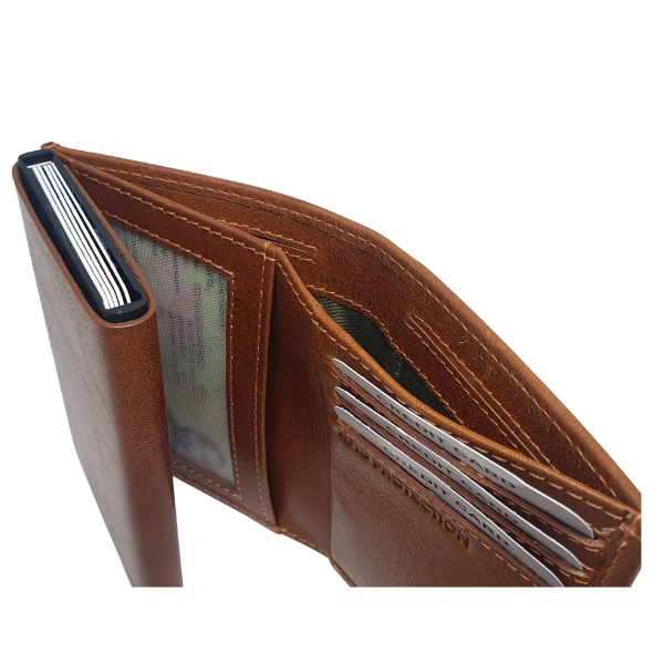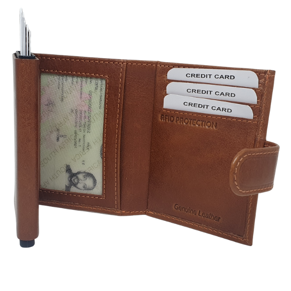 – Credit card pop up mechanism that fits 5 credit cards or 10 flat cards