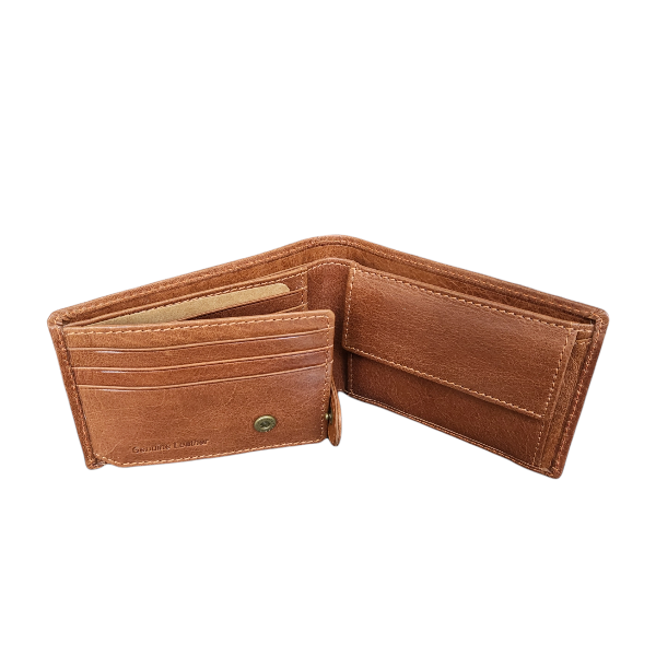 This Hide Culture leather wallet carries your notes, 8 credit cards and coins. Inside there is a flap that opens up to accommodate extra cards as well as a pouch for your coins. This wallet is RFID secure.