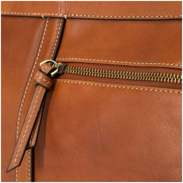 – Interior zip pocket with leather detail