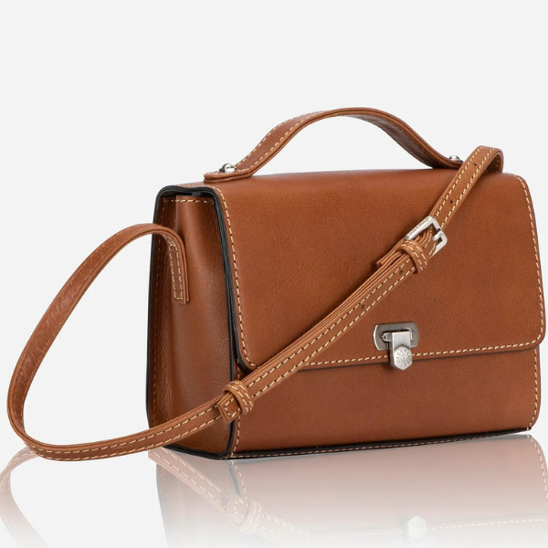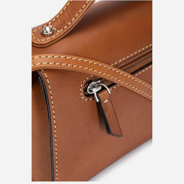 This cute Jekyll & Hide crossbody carries your mobile phone, purse and keys and you wear it across your shoulder using the long strap. It is made of leather and has little zip pockets for your small valuables.