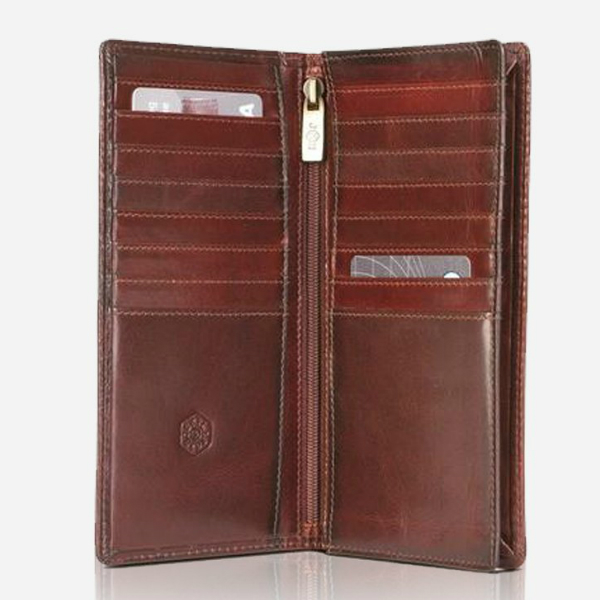 This wallet is small and designed for the gentleman who carries many cards with him. There is also a driver's licence slot inside and a coin compartment.