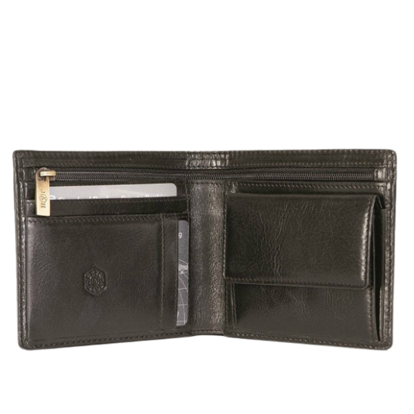A classic, simple one-fold wallet ideal for the guys who can keep it simple. This wallet has space for your notes, credit cards and it also has a coin pouch for your spare change. The white stitching gives it subtle detail and it’s also RFID secure.