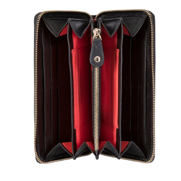 This large ladies zip-around purse is made of leather and carries up to 14 credit cards, has space for your notes, coins and your receipts. It also has a slot for your family photograph and is RFID secure.
