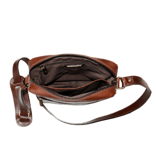 Made in Portugal, this Marta Ponti crossbody is made of 100% Italian veg leather and is for men. It has a single zip compartment with designer lining and slip pockets for your mobile phone or wallet. The long shoulder strap is adjustable and is padded for carrying-support.