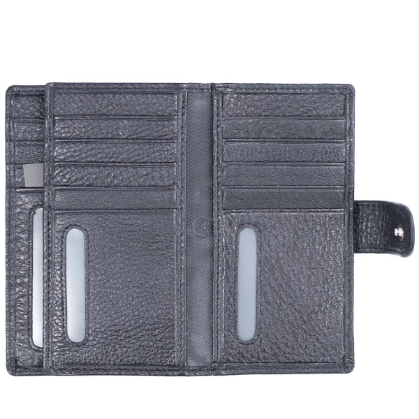 This Polo wallet carries 15 credit cards, has slots for your notes, a coin pouch for your change and a photo window for your ID or driver's licence. The inner tab holds your credit cards together as well.
