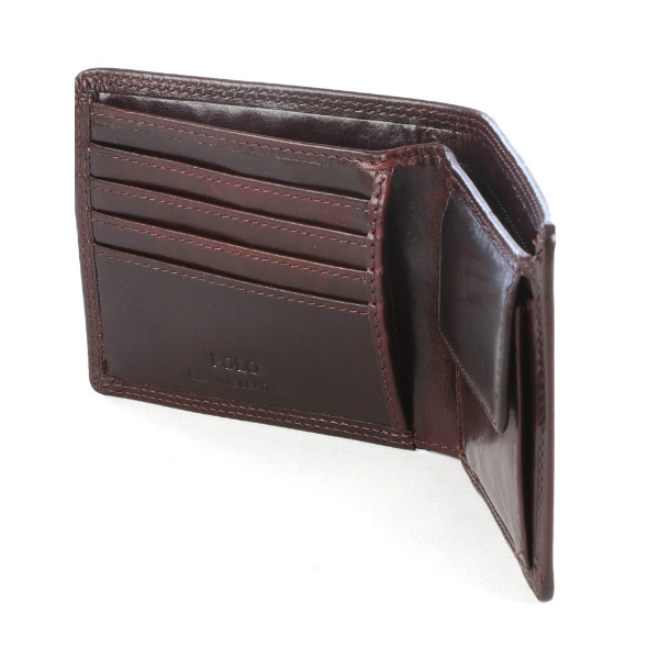 This leather Polo wallet has a slot for your notes, coin section and up to 4 credit cards.