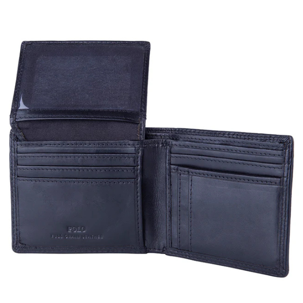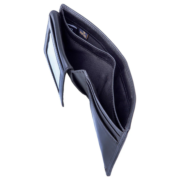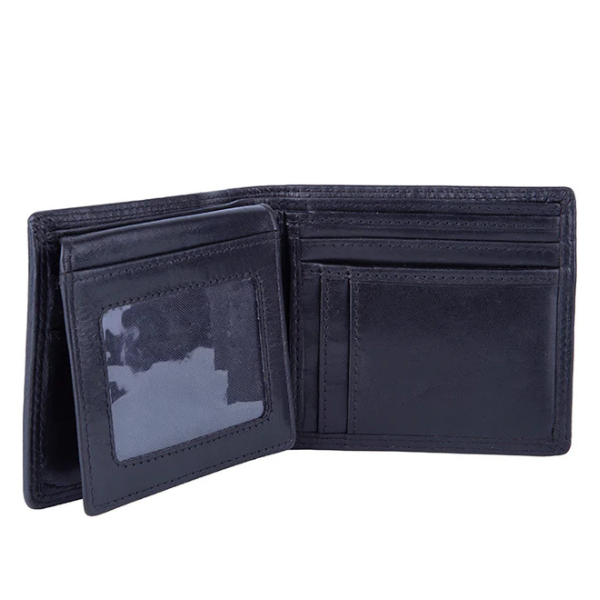 This wallet is slim and carries your notes and 10 credit cards. There is no coin pouch so it’s ideal for the gentleman who doesn’t carry coins. It also has a photograph slot inside which can also be used for your driver’s licence. There is a flap inside for more credit cards.