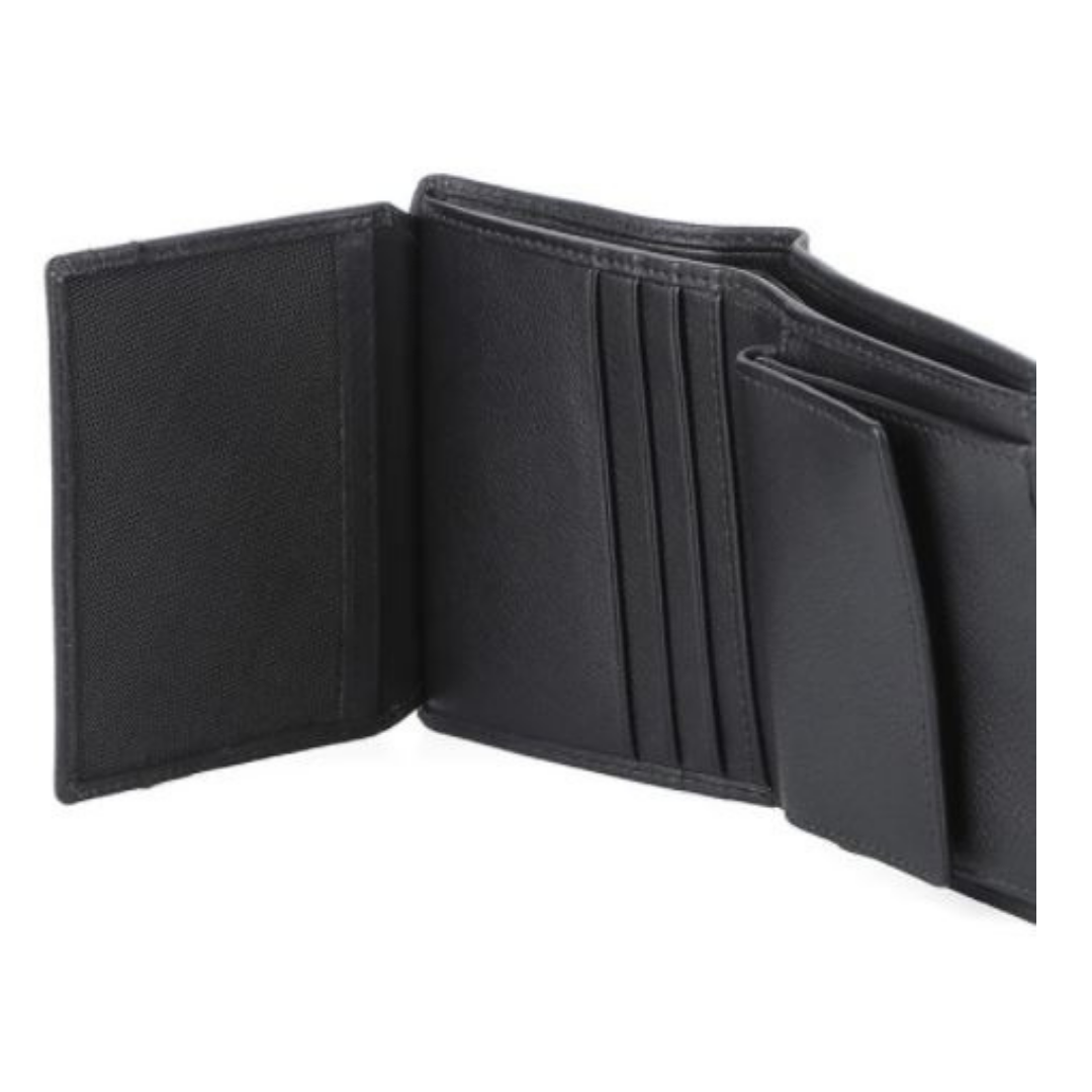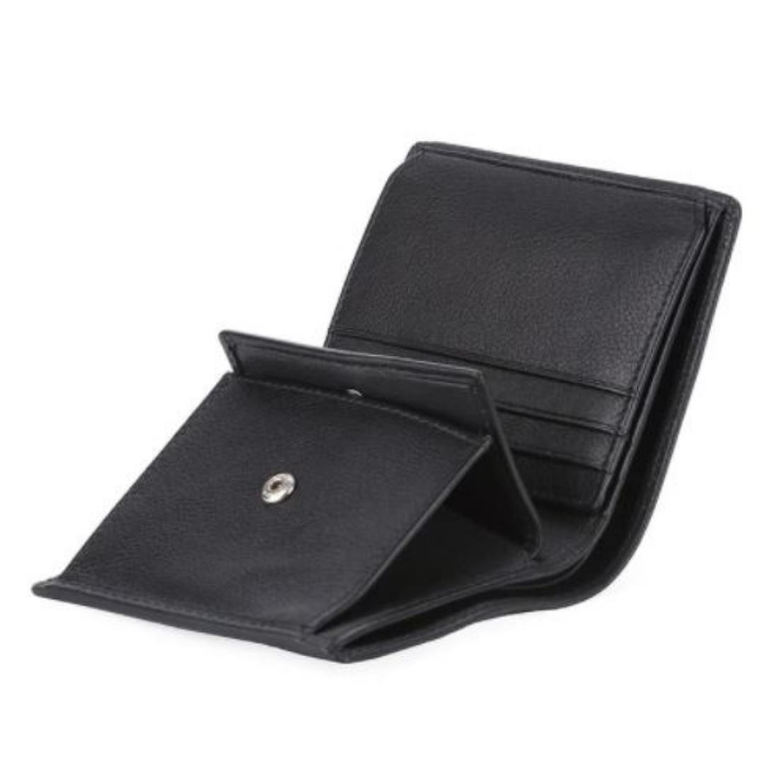 This leather wallet carries 8 credit cards, has a plastic sleeve for a photograph or drivers licence, a coin compartment for your change and 2 slots for your notes. It is also RFID secure.