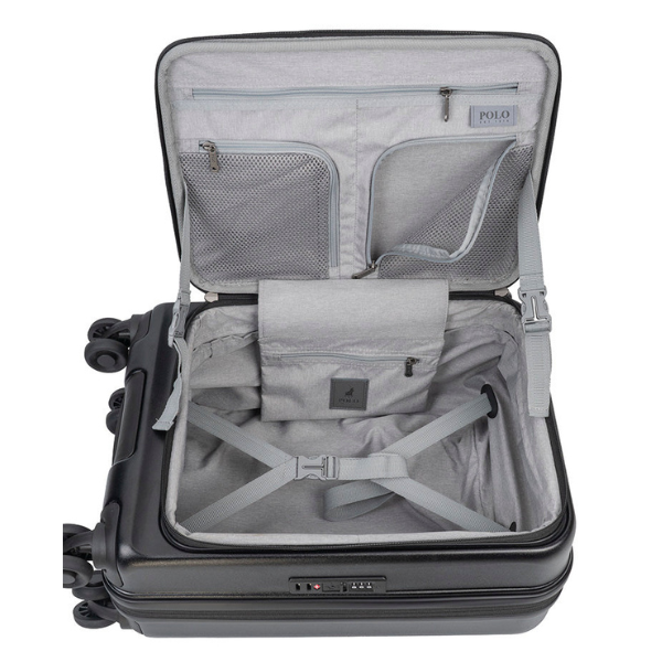 Refined, innovative, and designed for effortless travel — the Polo Orion Cabin Trolley redefines the way you pack. Featuring a sleek hard-shell exterior with a unique front-opening compartment, it offers the convenience of a soft suitcase with the durability of a structured case. Perfect for modern travelers, it delivers seamless organisation, smooth mobility, and understated luxury — making every journey smarter and more efficient. This bag is cabin-size.
