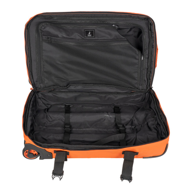 The Polo Sport Large Duffle is designed for travelers who want effortless mobility with smart, organised packing. Crafted from durable rip-stop treated canvas, this soft-shell duffle offers flexible space while staying tough enough for life on the move. The extractable trolley handle and smooth rolling wheels make travel easy, while multiple front and side pockets keep your essentials close at hand. Inside, you’ll find thoughtful details like an interior lining, secure packing straps, and handy pockets for smaller items. Finished with a comfortable top carry handle, this duffle is the perfect companion for quick trips and light travel.