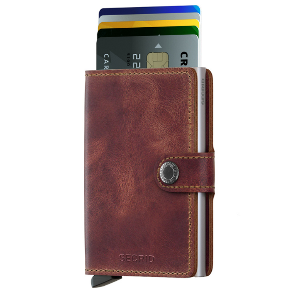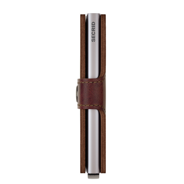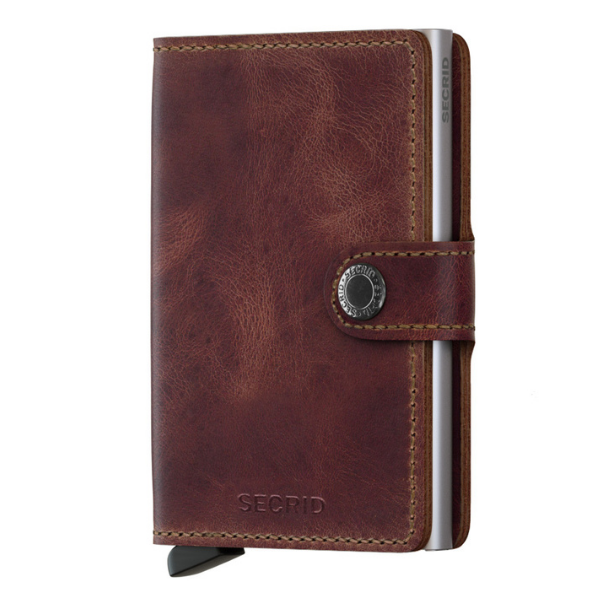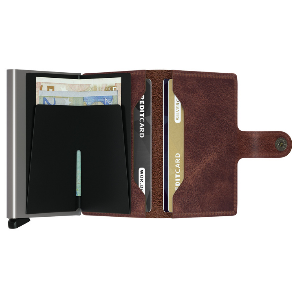 The Secrid Miniwallet is compact in size and its aluminum casing protects your cards from bending, breaking and unwanted wireless communication. Wrapped around the case is a corrected- grain leather that has an abraded surface and a wax finish to give it a stonewashed look. The wax ages over time and gives it a personalised look. The wallet carries your credit cards, notes and is slim to fit inside your trouser or coat pocket.
